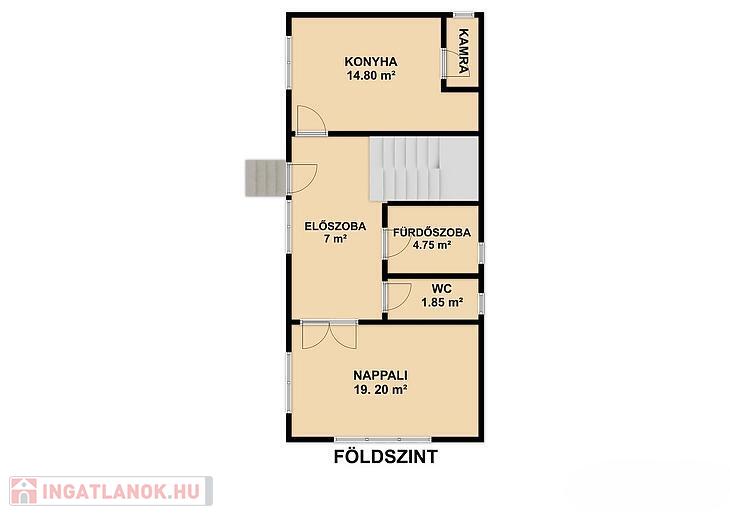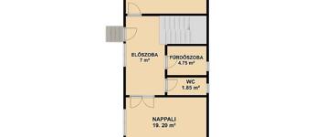 Földszint: Nappali, konyha, kamra, kádas fürdőszoba + wc, előszoba.
