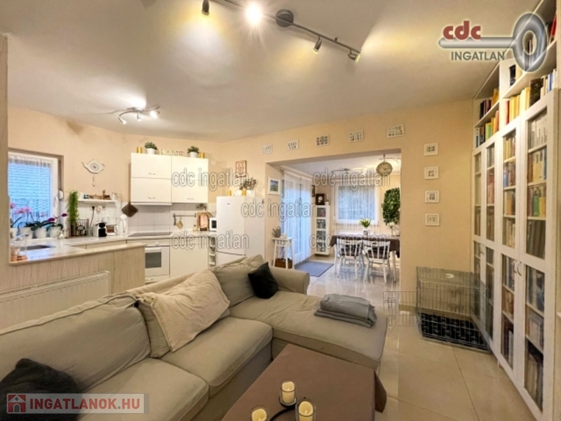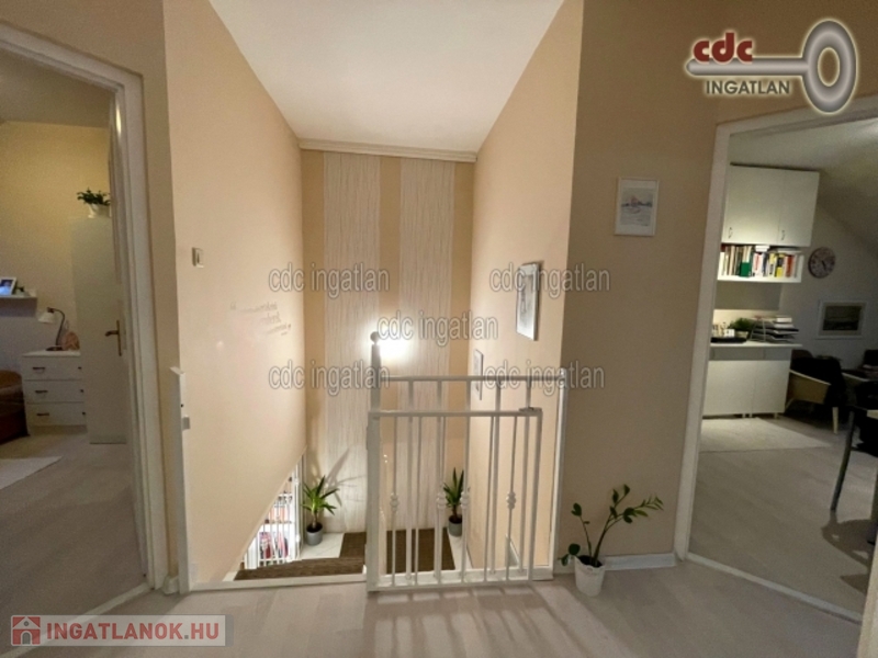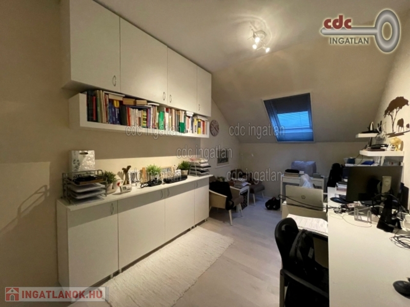 Megvételre kínálunk a XVIII. kerület frekventált részén, Szent Imre-kertvárosban egy 2000-ben épült ikerház felet rendezett, parkosított, intim kerttel. Az ingatlan két külön bejáratú lakrészből áll. A kisebb lakás 32 m2-es, a nagyobb belső kétszintes, 102 m2-es, 5 szobás. -Miután a két ingatlan hivatalosan is két lakás, kedvezményes közüzemi díjazás alá esik. A két külön lakrész igény esetén újra egybenyitható, de jelen állapotában kiadásra vagy vállalkozásnak, irodának alkalmas.- A ház 10 évvel ezelőtt teljes felújításon esett át ekkor a víz és a villanyvezetékek valamint a burkolatok cseréje megtörtént és a fűtésrendszer is korszerűsítésre került. A nyílászárókat szintén cserélték és új, redőnnyel és szúnyoghálóval ellátott nyílászárók kerültek beszerelésre. A padlástér szigetelt, tárolásra alkalmas. Az ingatlan 7 cm-es külső szigeteléssel rendelkezik, falazata első generációs Liapor SL falazóelem. A háznak a szomszéddal nincs közös fala, külön tetőszerkezete is van. A környék ellátottsága nagyon jó, a közvetlen közelben iskola, élelmiszerbolt, orvosi rendelő. A tömegközlekedés kiváló, a 166-os, 182-es, és a 282E, 266-os buszok megállója pár perces sétára található.