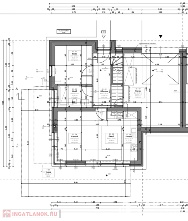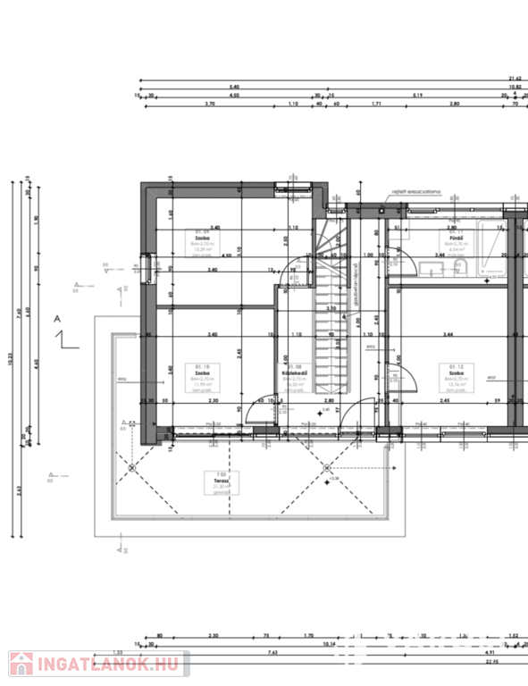 Teraszok: 37,5 m² földszinten + 21,3 m² emeleten