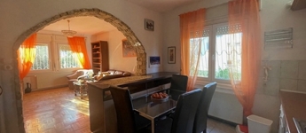 Megvételre kínálunk a XVIII. kerület kedvelt részén egy közel 1000 nm-es rendezett telken lévő 210 nm-es családi házat. Az ingatlan 2 külön lakrészből áll, két külön utcai bejárattal. A kisebb lakás 70 nm-es, amerikai konyhás nappalis, 2 külön nyíló szobás,napfényes, ablakos fürdőszobával, külön mellékhelyiséggel. A nagyobb lakás belső két szintes, klimatizált. Az alsó szinten ablakos konyha, nappali, mellékhelyiség kapott helyet. A felső szinten 3 külön nyíló szoba, fürdőszoba és egy erkélyes nappali található. A házhoz tartozik még egy 70 nm-es terasz, kertben szaletli illetve fúrt kút.