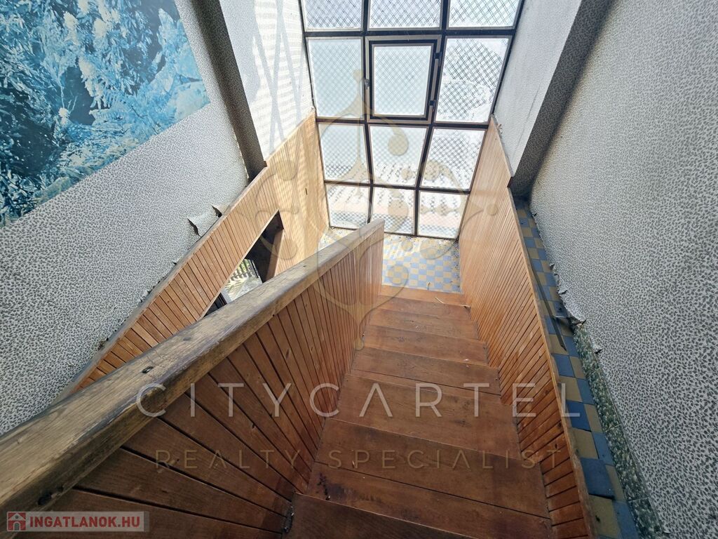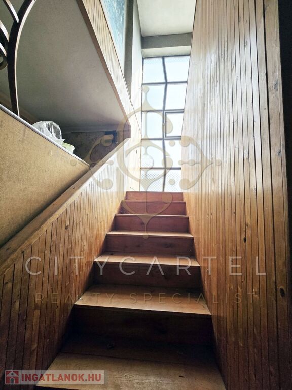 A lépcsőház a felső szintre vezet, lefelé a pince felé közlekedhetünk, ahol a kazán és a garázs is található.