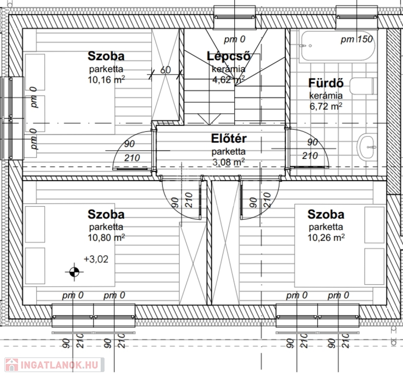 • 3 szoba 10.8 m2, 10.26 m2, 10.16 m2