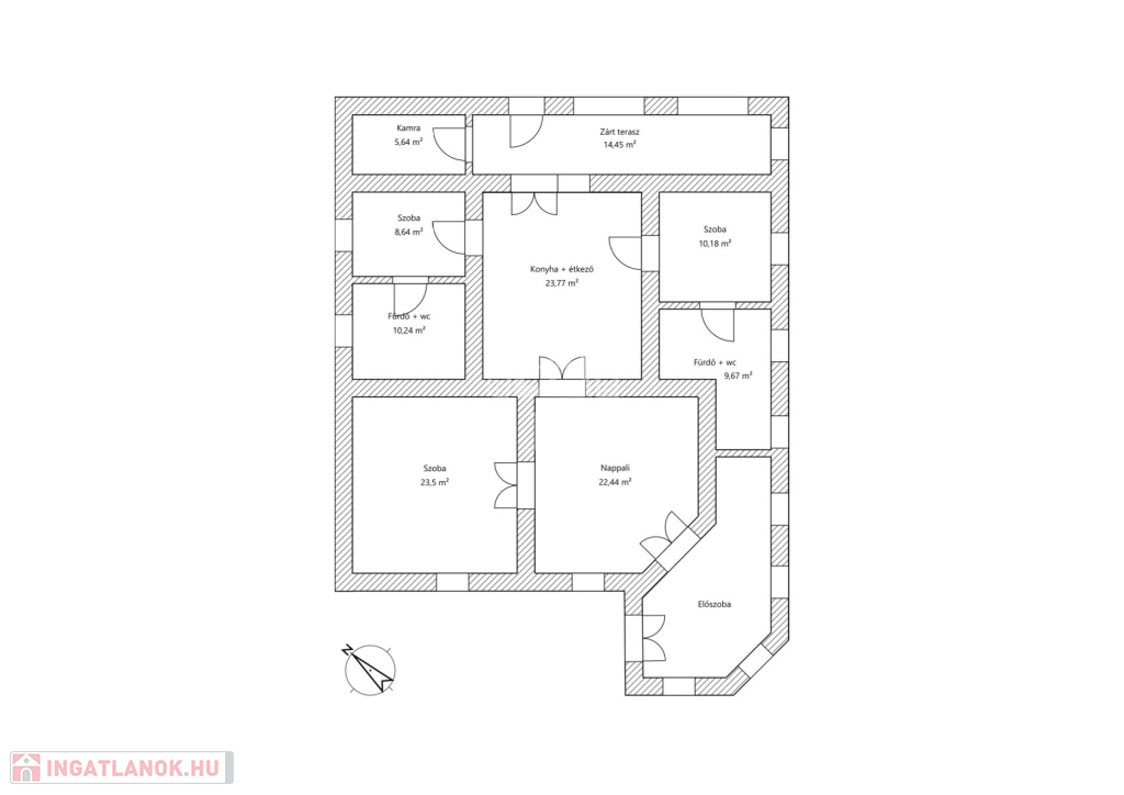 Elrendezés: Tágas nappali + 3 szoba, 2 fürdőszoba