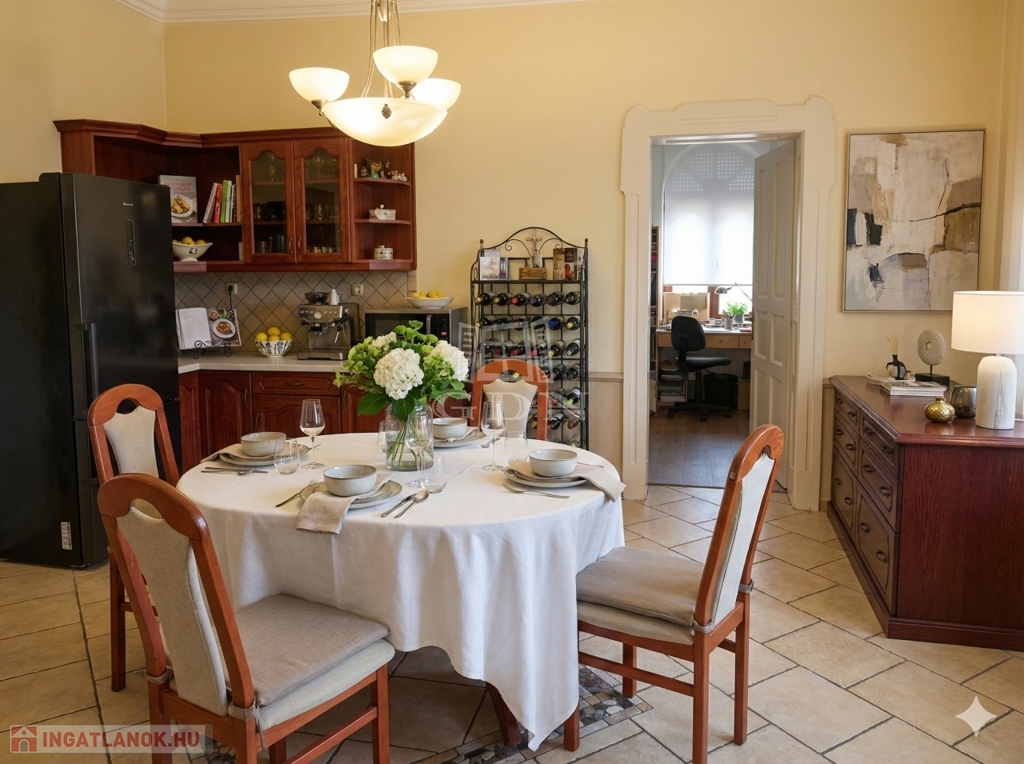Eladásra kínálunk Cegléden, a vasútállomás közelében, egy kifejezetten csendes, kertvárosi övezetben elhelyezkedő, kúria jellegű, nagypolgári családi házat. Az ingatlan az 1950-es évek eleganciáját ötvözi a legmodernebb energetikai és műszaki megoldásaival.