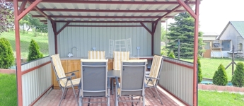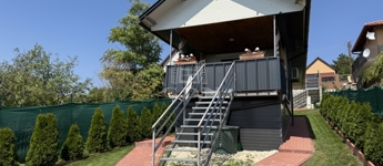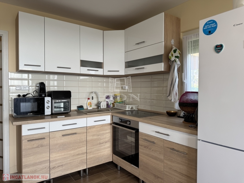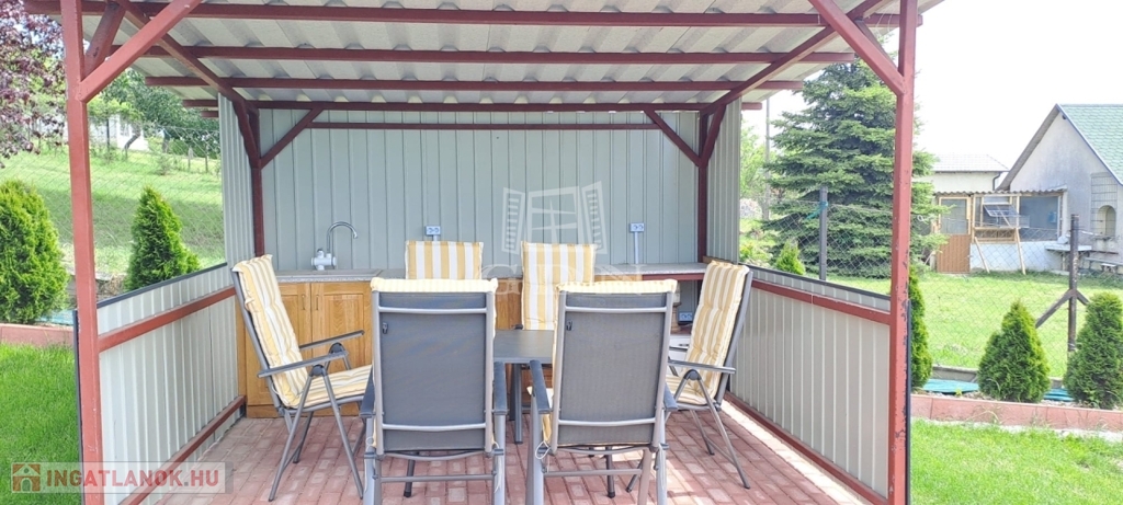 A telek 800m2, teljesen körbekerített, nagy része térkövezett és örökzöldekkel beültetett. Pergolás kültéri konyha áll rendelkezésre a kerti élményekhez.