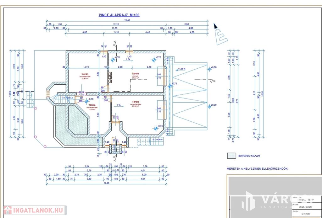 Pince (97,4 m²) – duplagarázs, tárolóhelyiségek és szauna kialakításának lehetősége