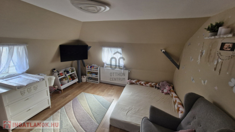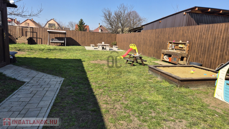 Az otthon kényelméhez két klíma, kombi kazán és egy okosrendszer is hozzájárul, amelyről távolról vezérelhető a kapu, a fűtés, a klímák, a riasztó és a világítás. A 700 m²-es telek rendezett és élhető: 50 m²-es előkert díszfákkal, 40 m² fedett terasz, saját szalonnasütő, játszótér, vetemény és kétállásos beálló. Új tetőlemez, új kerítés, műanyag nyílászárók, 3 fázisú áram, 4 zónás riasztó és külső kamerák teszik biztonságossá és időtállóvá.