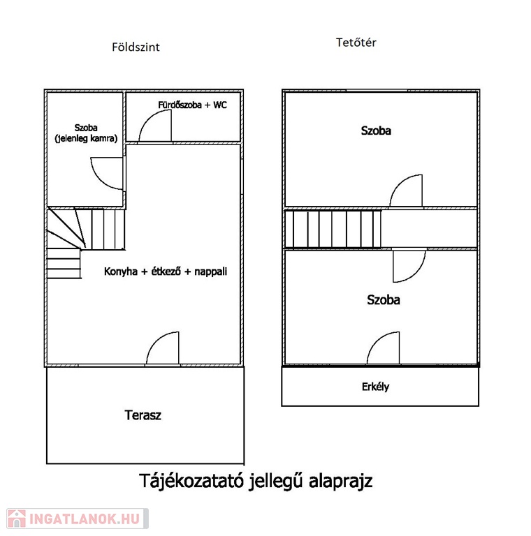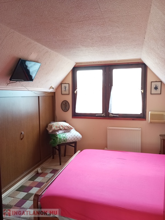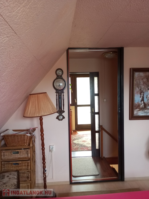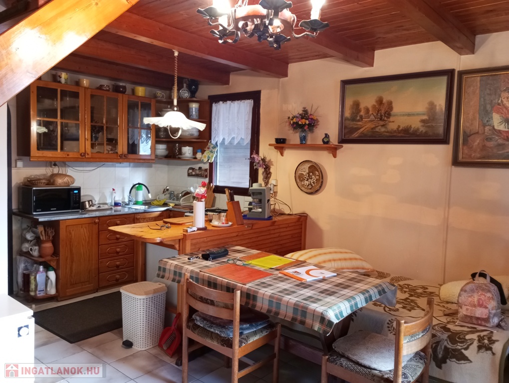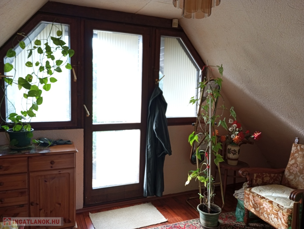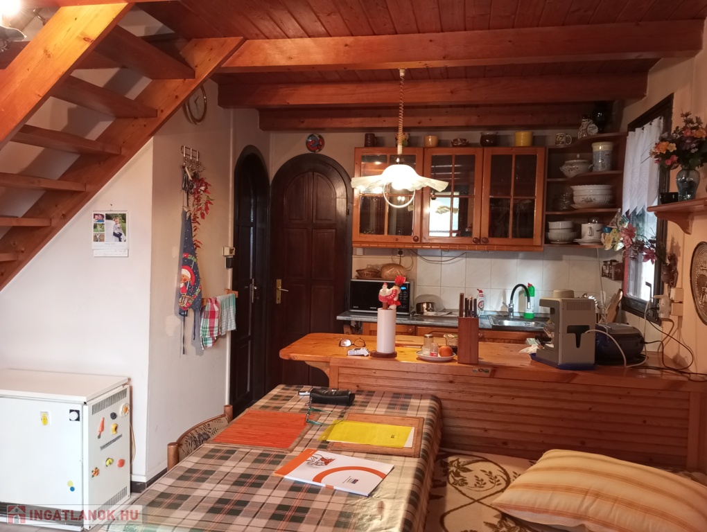 Elrendezése: földszinten nappali-konyha-étkező egyben, fürdőszoba-WC, és egy szoba (jelenleg kamrának használják). A tetőtérbe 2 különnyíló szoba található.