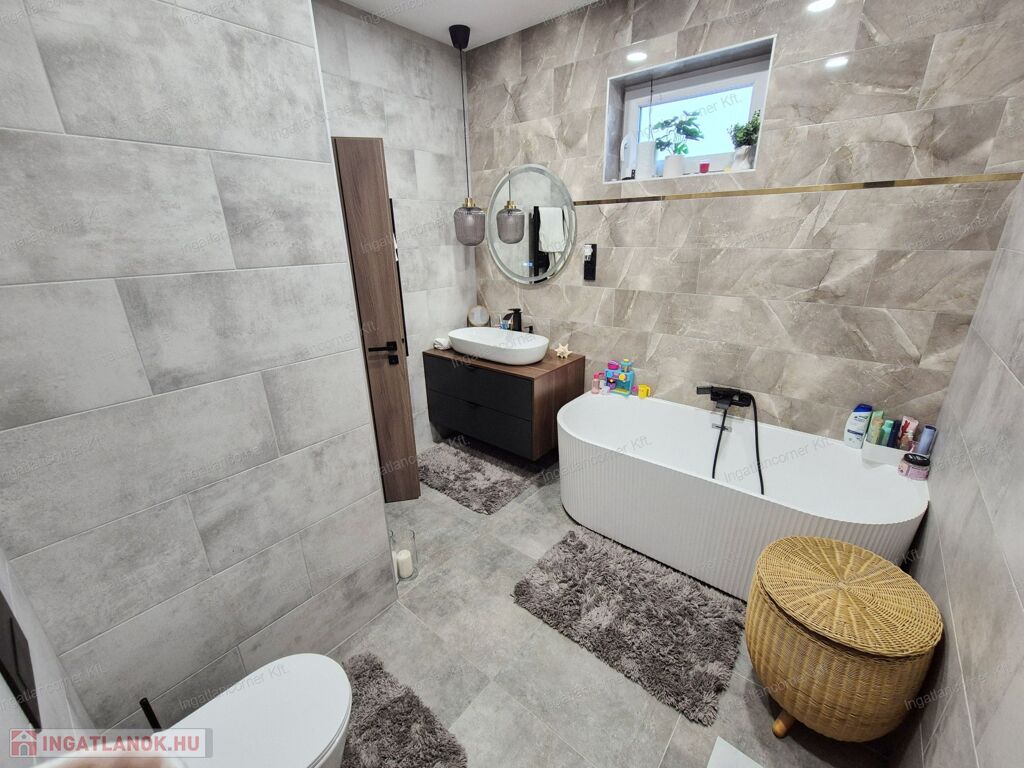 Az ingatlan 425m2 telekkel rendelkezik, melynek kertje a műfűnek köszönhetően GONDOZÁSMENTES, a lakótér 105 m² hasznos alapterülettel rendelkező ingatlan, melynek ELOSZTÁSA és TÁJOLÁSA KIVÁLÓ. A lakótéren túl egy 18,44 m²-es fedett terasz érhető el a nappaliból. A ház igényesen berendezett, modern megoldásokkal és minőségi anyaghasználattal készült.