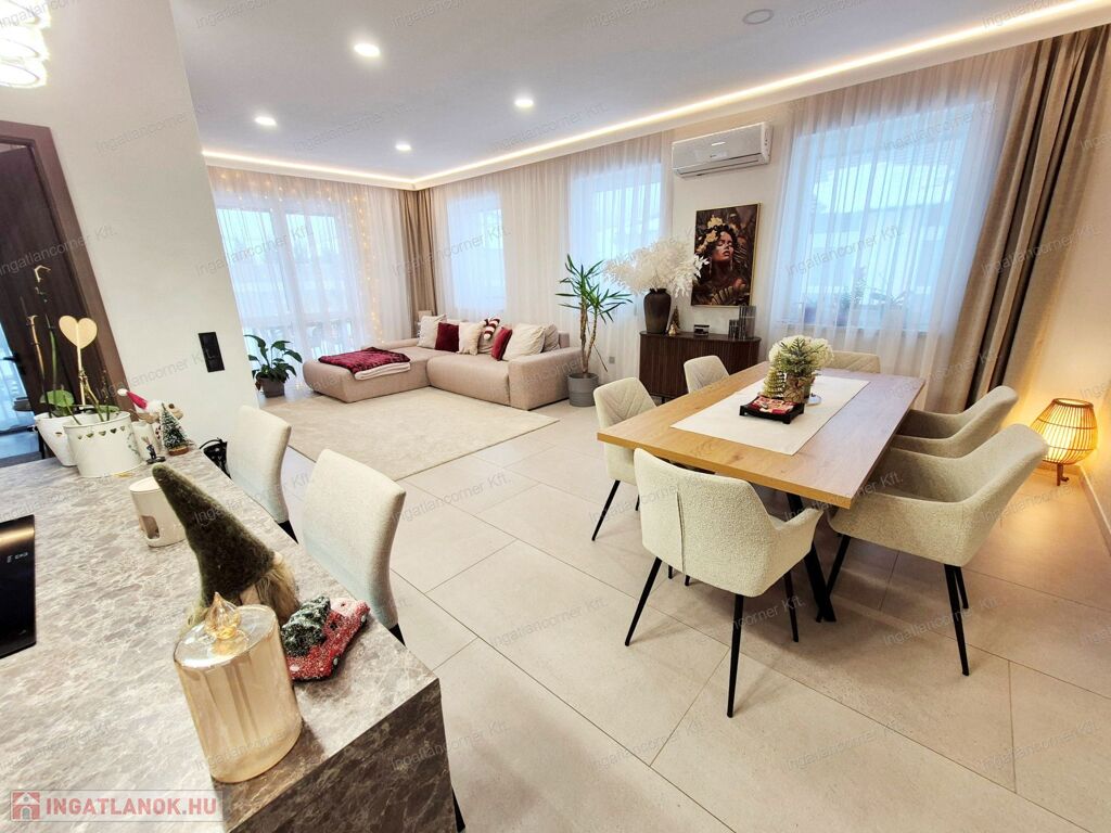 -REJTETT VILÁGÍTÁS: minden helyiségben távirányítóval vezérelhető mennyezeti led világítás, pluszban a konyhában a pult és konyhabútor alatt és a média fal két oldalán.