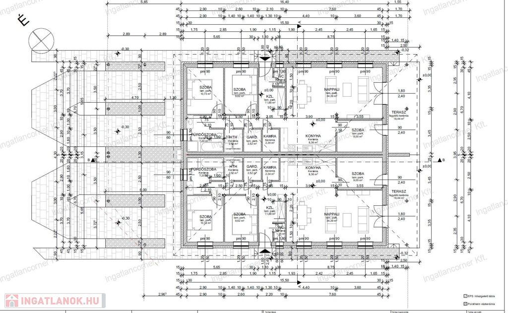 •Dupla gépkocsi beálló: SZ: 2,50m x H:6m, így darabonként 15m2-esek