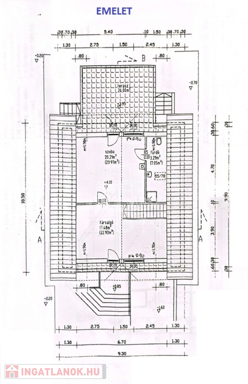 Az ingatlan lakótere 148 nm + 22 nm terasz + 26 és 14 nm erkély