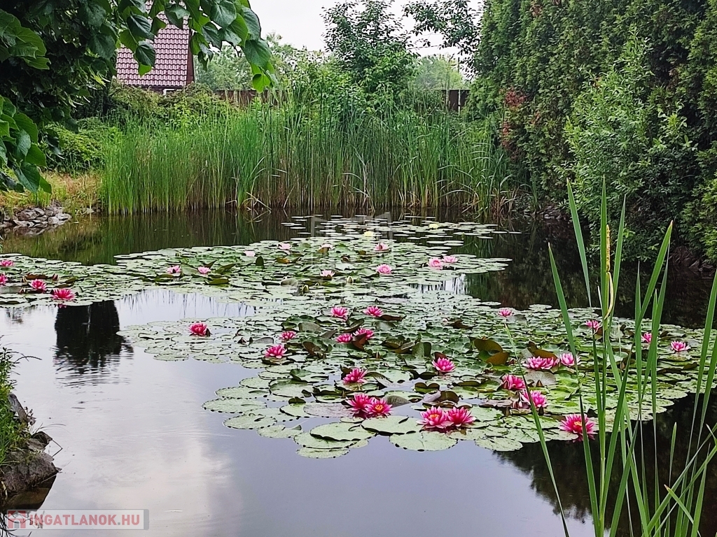 Az otthon csendes környezetben található, körülötte halastó, tavirózsák és örökzöldek teremtenek varázslatos hangulatot.
