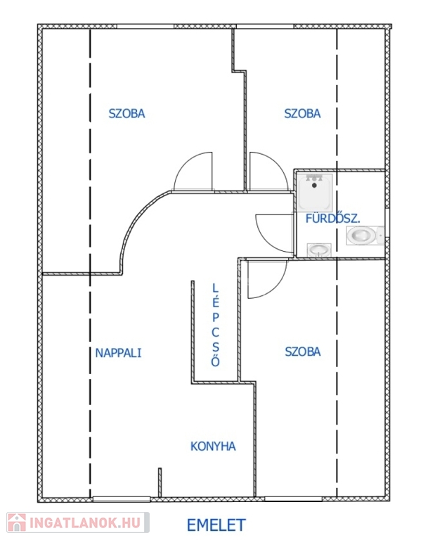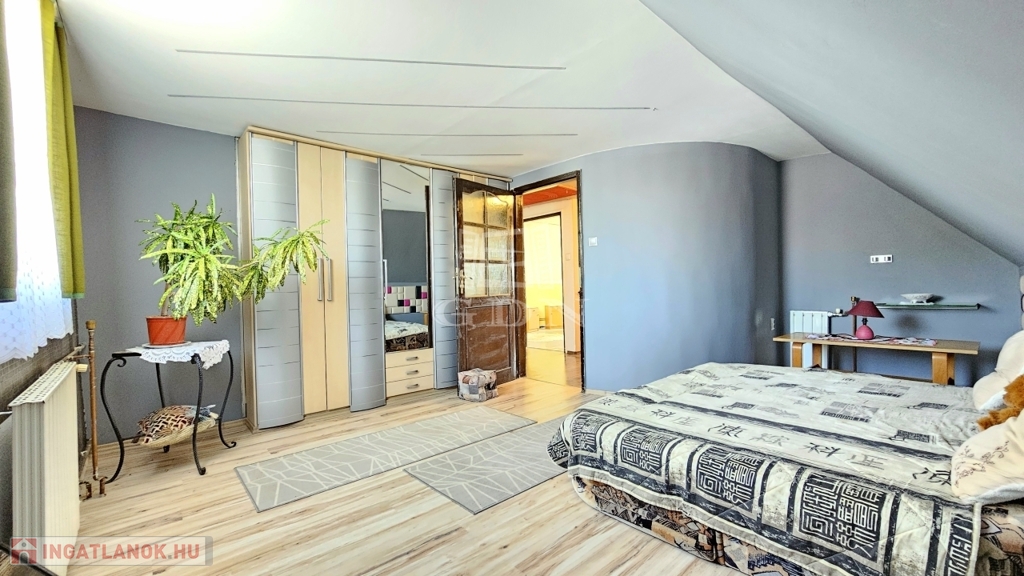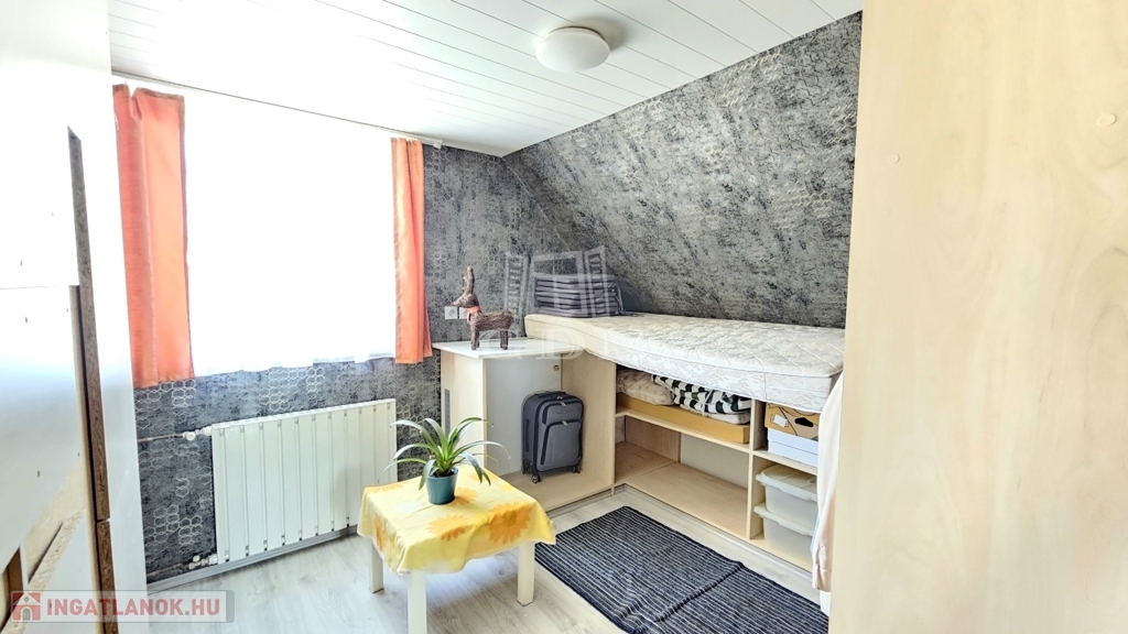 - Emelet (1996-ban épült be): 3 szoba, amerikai konyhás nappali, fürdőszoba