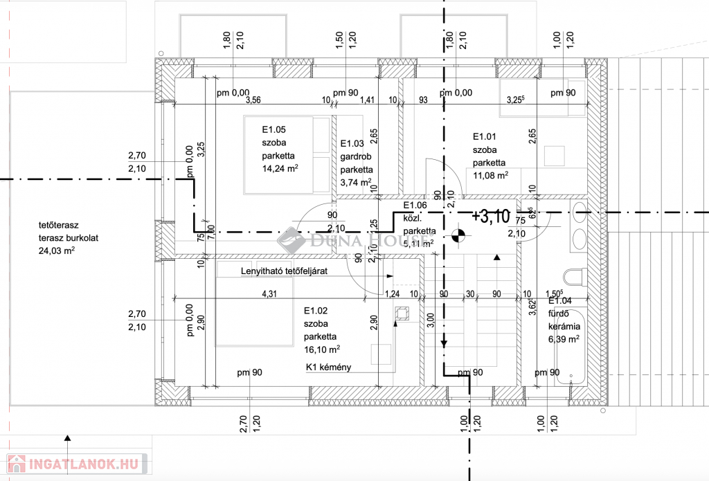 Az ingatlan nettó hasznos területe 174 m2 lakótér + 36 m2-es dupla állásos garázs, 2 db terasz és 2 db erkély, 500 m2 telekkel.
