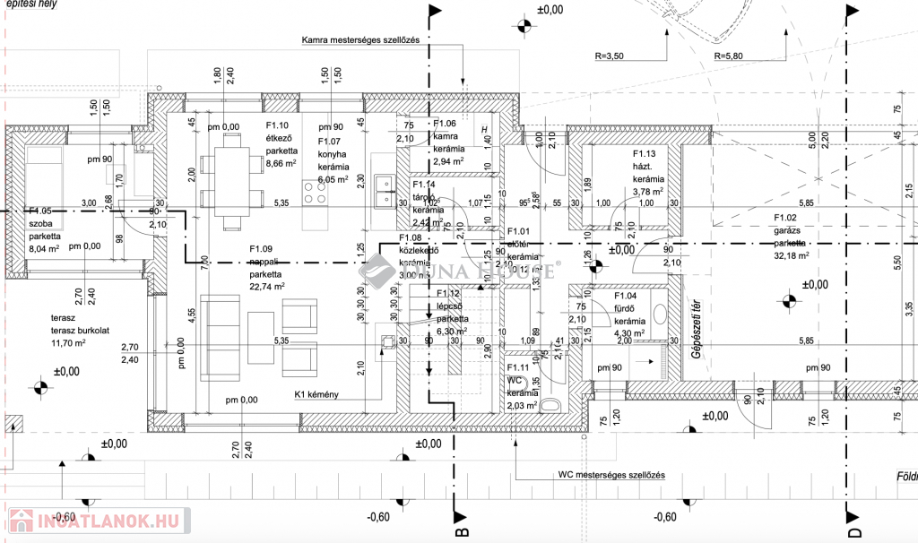 Műszaki adatok:- 30-as Leier tégla, 10 cm válaszfalak- 15 cm homlokzati szigetelés- Hőszivattyú 200 literes használati meleg víz tartállyal- H- tarifás mérőszekrény kialakítás