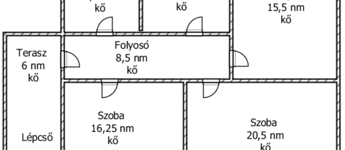 Az ingatlanban egy konyha, 2 szoba, fürdőszoba, kamra, és közlekedő található. A ház alápincézett, az ablakok redőnyözöttek.