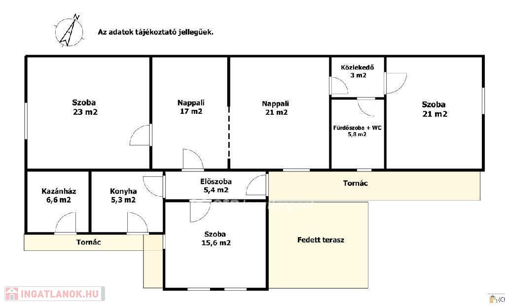 A konyhából ritkaságszámba menő látvány tárul elénk: kilátás nyílik a kerti tóra, amely gondos rendbetétel után különleges dísze lehet az udvarnak. A házat tornác futja körbe és hatalmas fedett terasszal rendelkezik. A belső tér minden helyisége kiemelkedően nagy méretű.