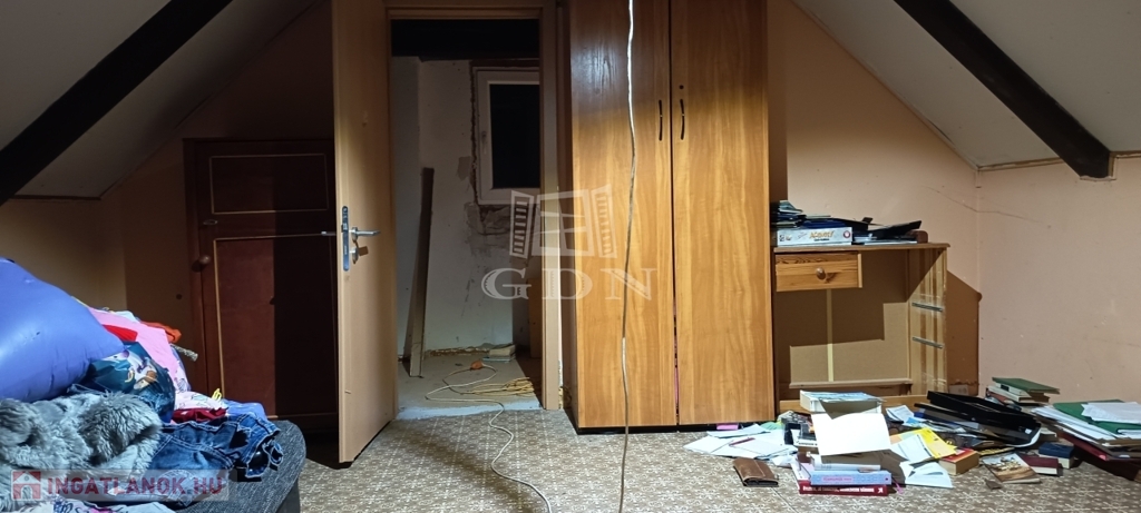 A tetőtéri rész beépített, a nyílászárók itt is újak, hőszigeteltek. Egy előtér és egy szoba került kialakításra.