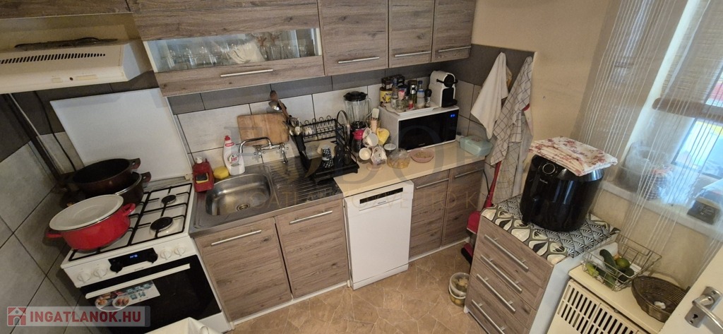 A homlokzat 5 cm-es, a tetőtér pedig 10 cm-es hőszigeteléssel rendelkezik. Fűtés gázkonvektorral történik, a melegvíz ellátást villanybojler biztosítja. A falakon néhol repedések láthatók, ezért az ingatlant felújítandónak hirdetjük. A konyhabútor az ár részét képezi.