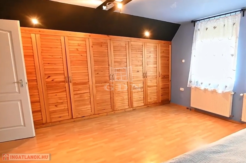 - Földszint: kellemes előtér, hangulatos, boltíves közlekedő, szoba, óriási nappali, tágas, felszerelt konyha, külön nyíló nagy kamrával, sarokkádas fürdő, külön toalett.