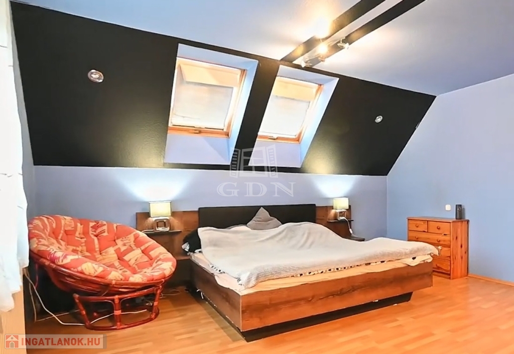 -Emelet: két tágas, valamint egy kisebb szoba, fürdőszoba toalettel,