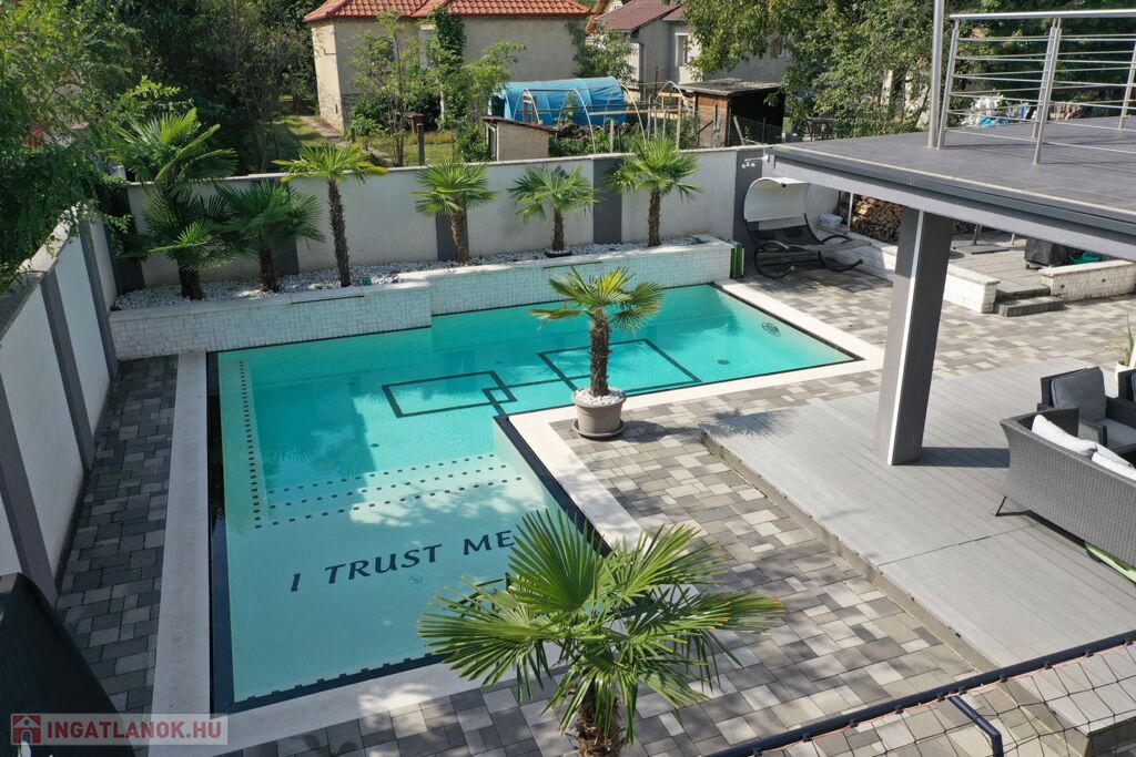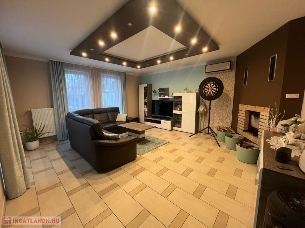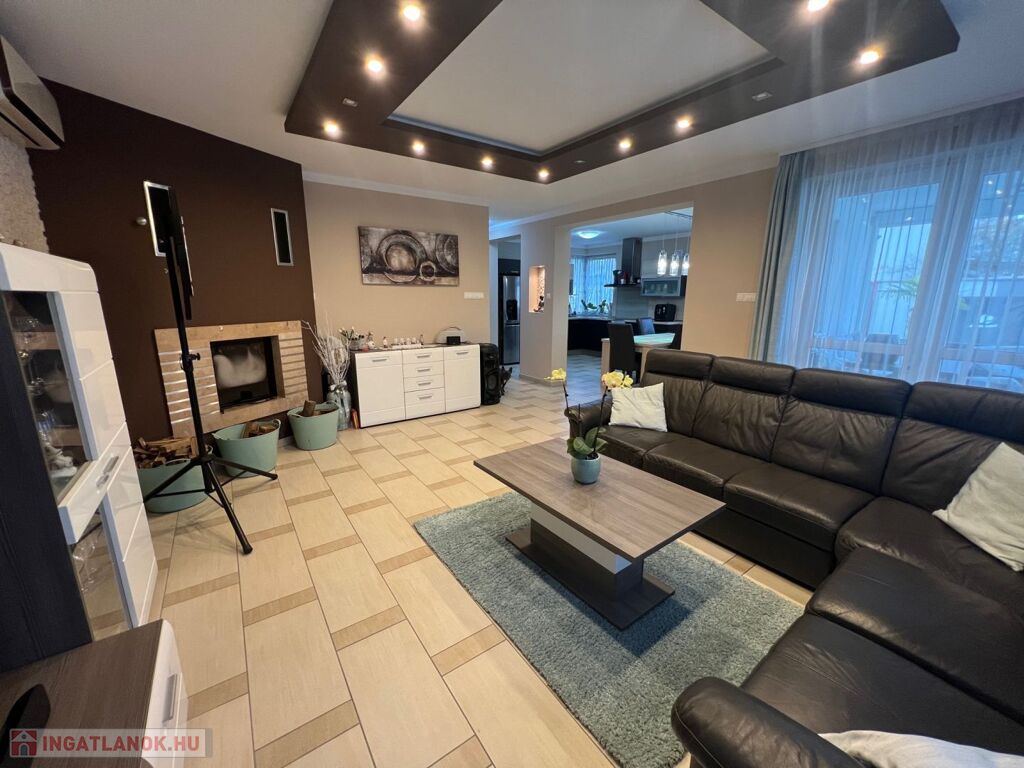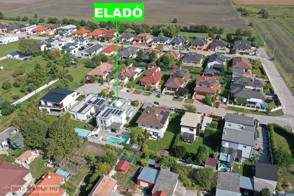 Győr-Ménfőcsanak nyugodt részén, új építésű lakóházak között, 540 m2-es telken, 2014-ban épült, 171 m2-es, nappali plusz 4 szobás lakótérrel, 61 m2-es terasszal, erkéllyel, 30 m2-es garázzsal, 20 m2-es fedett gépkocsi beállóval, 65 m2-es medence térrel, csillagvizsgálóval rendelkező lakóház eladó.