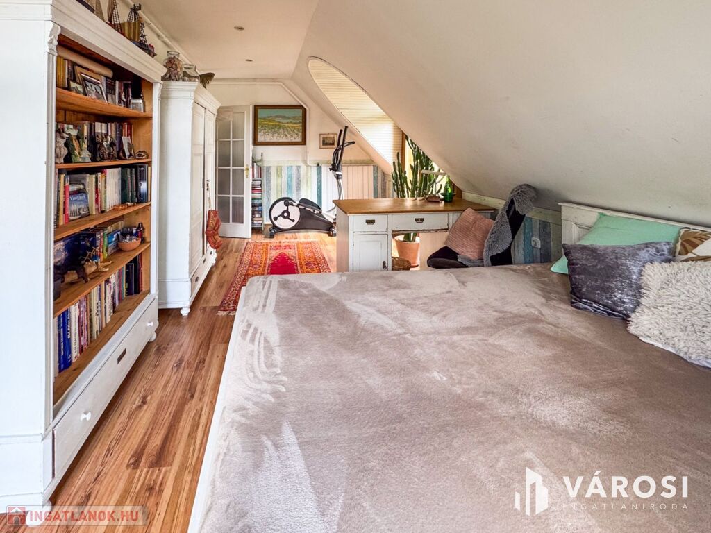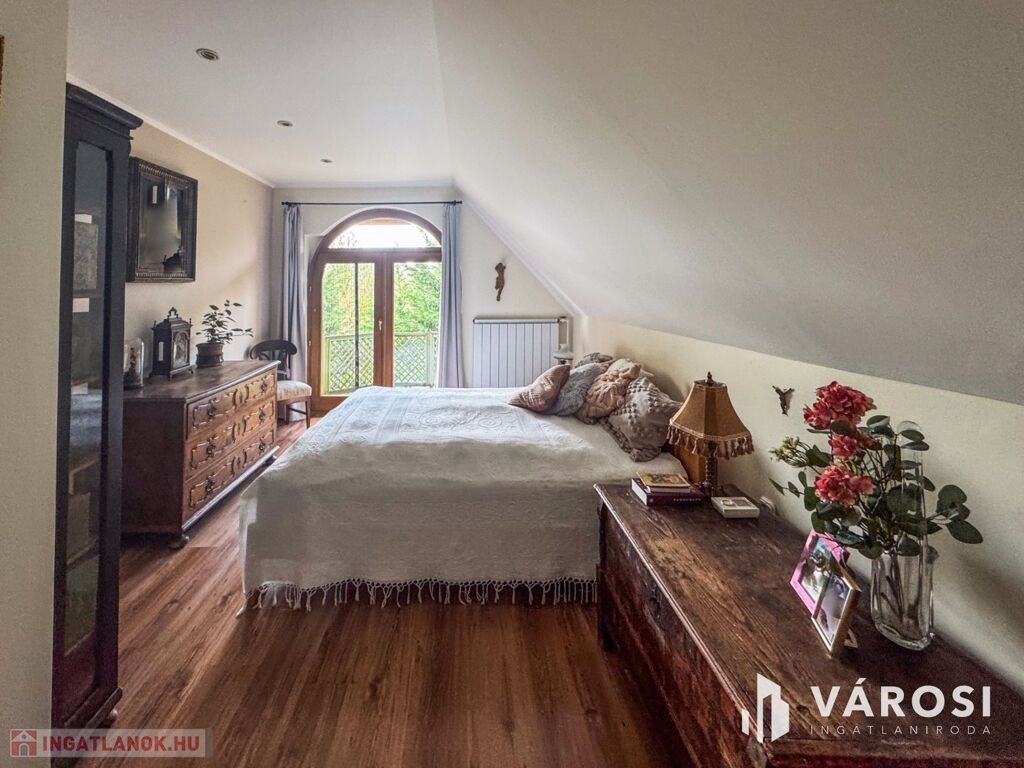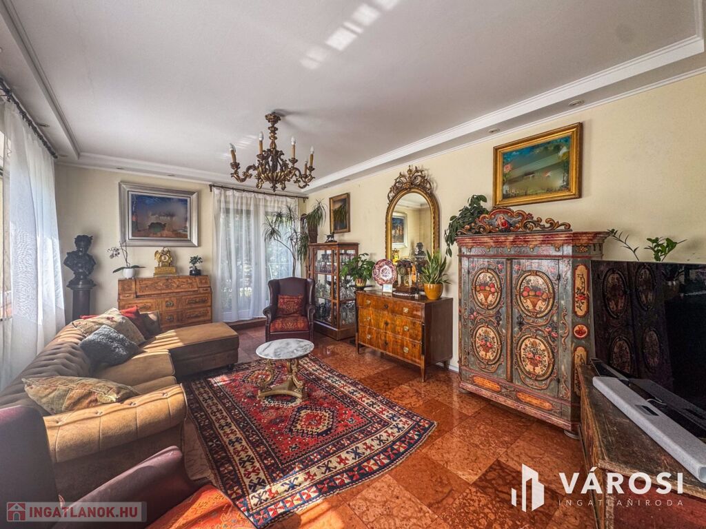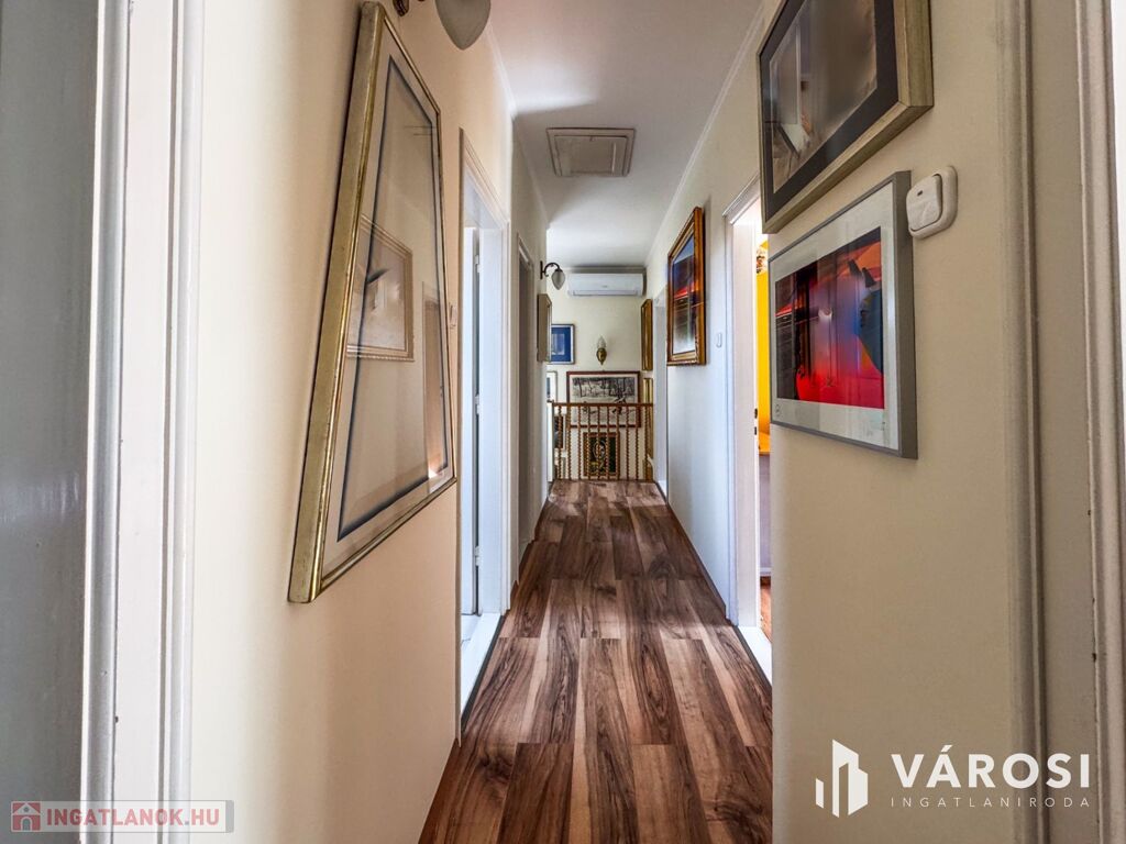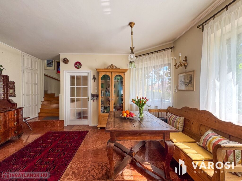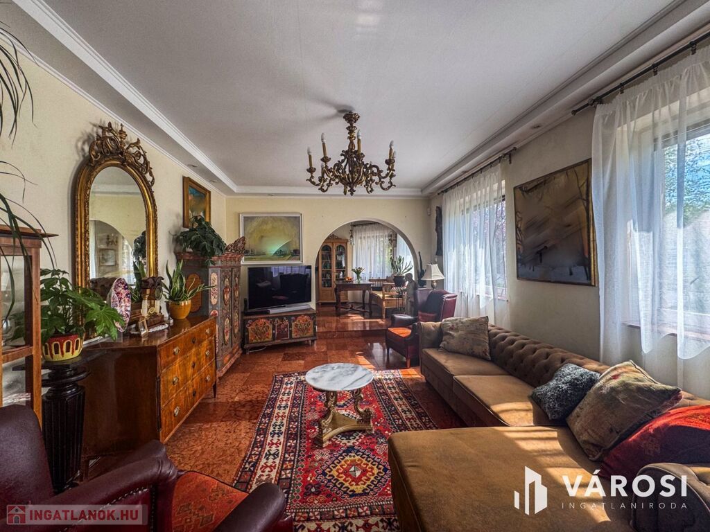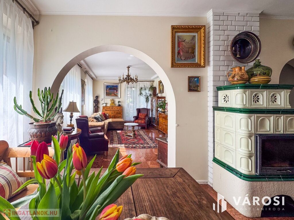 Az ingatlanban 5 hálószoba, 1 dolgozószoba, 1 nappali és 2 fürdőszoba található. Az épület kiváló állapotban van, padlófűtés és klíma biztosítja a komfortot, míg a külső hőszigetelés az energiatakarékosságot garantálja. A kertkapcsolattal rendelkező terasz és az egyedi kialakítású télikert tökéletes helyszín a pihenésre és a családi összejövetelekre.