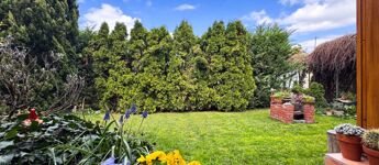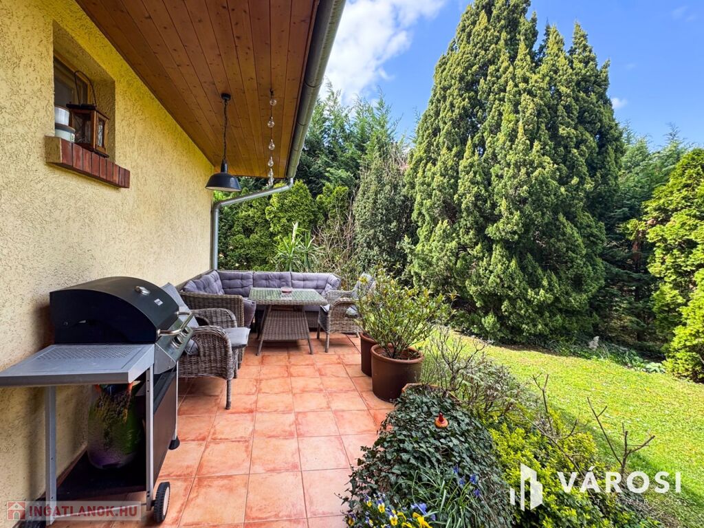 A kert igazi paradicsom a zöldövezeti életérzés kedvelőinek: fúrt kút és automata öntözőrendszer biztosítja a növények gondozását. A beépített szekrények praktikusan segítik a rendszerezést és a tárolást.