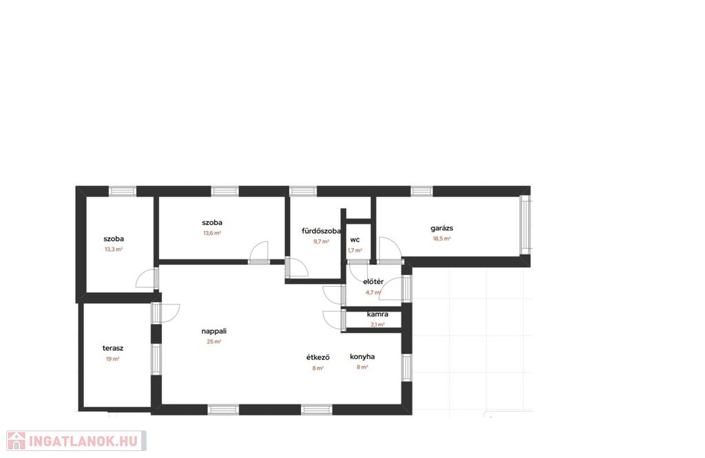Eladásra kínálunk egy 125 m²-es, hangulatos ingatlant, melyből 88 m² a lakótér, továbbá 19 m² fedett terasz és 18 m²-es garázs tartozik hozzá – bájos, azonnal birtokba vehető otthon, ideális választás mindazoknak, akik kényelmes, jól felszerelt házra vágynak.