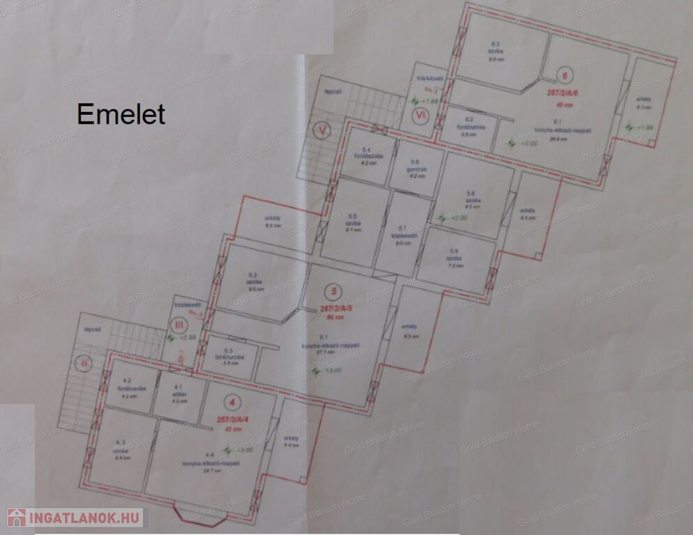 - 1. emelet 159 nm: recepció, 1 stúdió (szoba, zuhanyzó + WC, erkély), 3 db. 2 szobás apartman (konyha-étkező-nappali, hálószoba, zuhanyzó+WC) 4 terasz