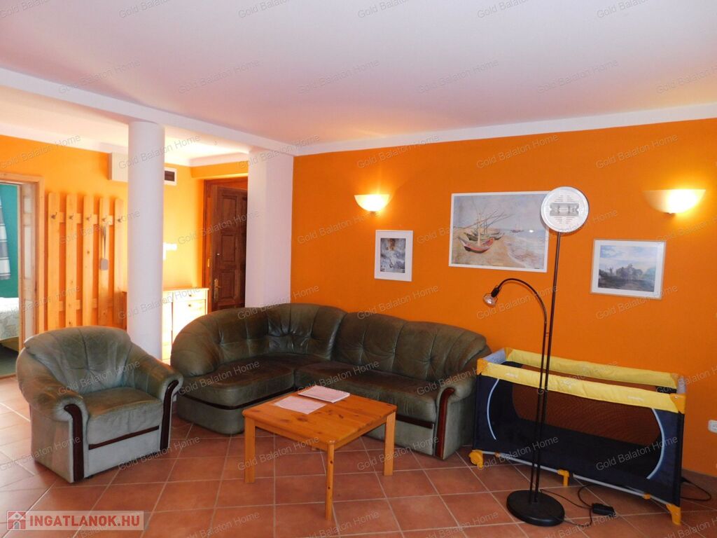 Három lakásos családi ház: földszinten 1 nagy lakás, emeleten 2 külön bejáratú apartmannal - a Hévízi Termál Gyógyfürdőtől 1200 méterre, a Balatontól 7000 méterre eladó. A ház három szintes, pinceszinten tárolók és háztartási helyiségek vannak.