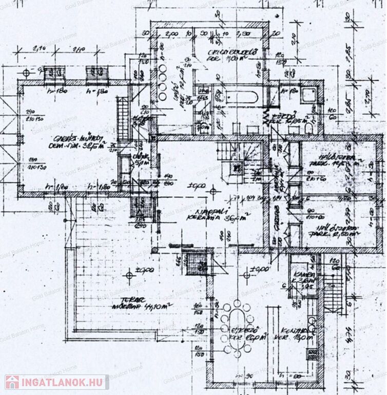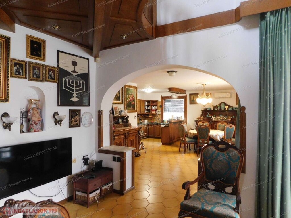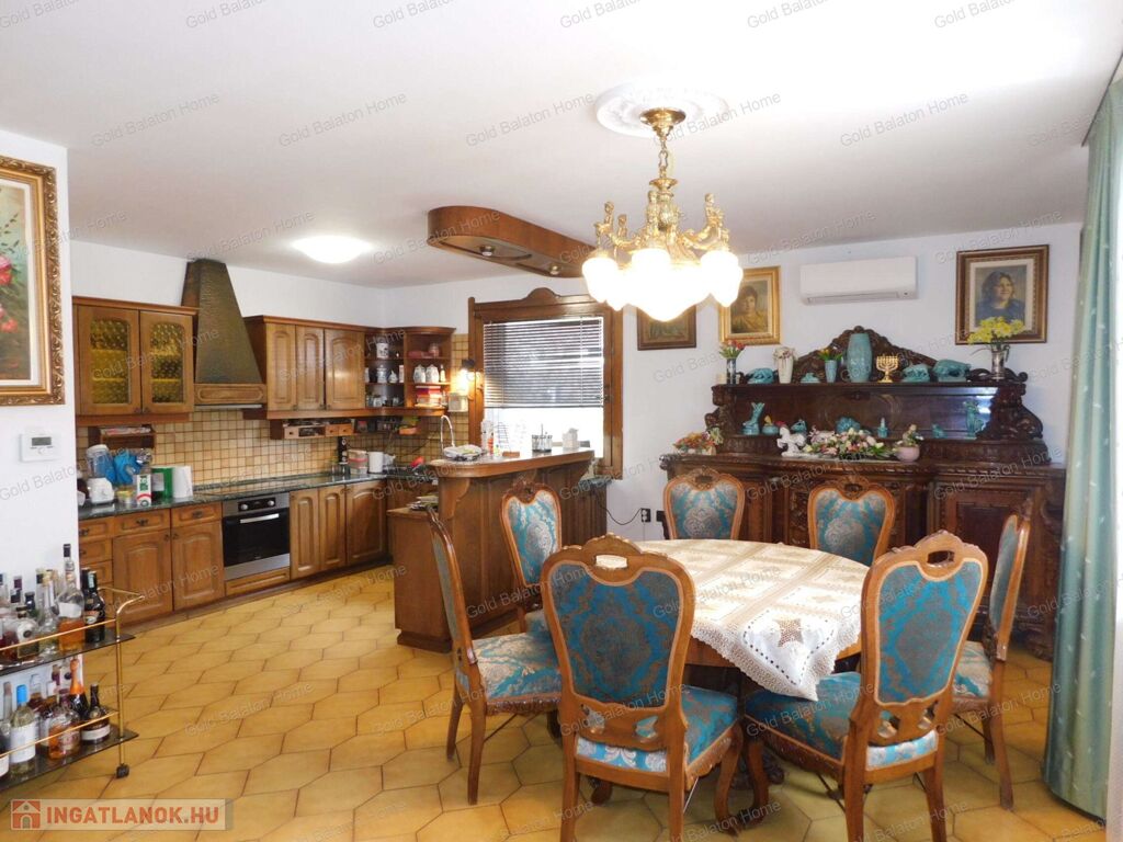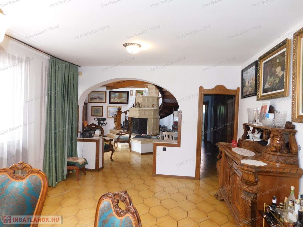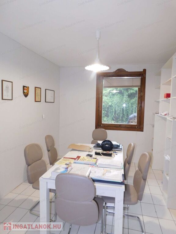 A családi ház két külön bejárattal rendelkezik, az egyik bejáraton az iroda, vagy akár rendelőként használható helyiségek vannak. A belső térből átjárás lehetséges az iroda és a duplagarázs felé is. Hévíz egyik csendes utcájában részben bútorozott, 5 hálószobás, nagy nappalis CSALÁDI HÁZ, gondozott kerttel és rendezett udvarral - a Hévízi tótól mindössze 1100 méterre, a Balatontól 7km-re eladó.