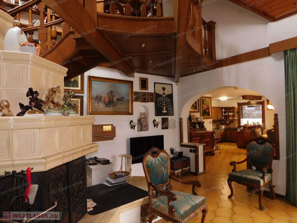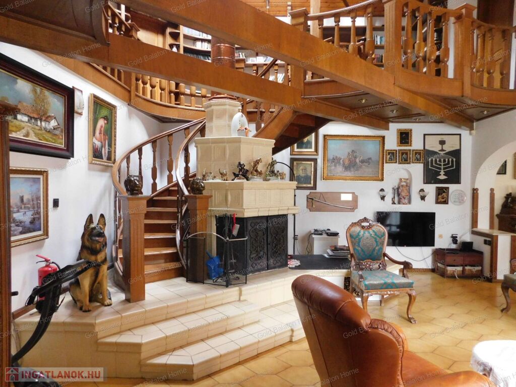 - igényes, stílusos berendezés: az ajtók, lépcsők, korlátok, beépített szekrények mind tölgyfából készültek, egyedi tervezésűek