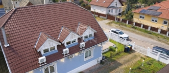 A fűtés és hűtés 10 darab, modern, wifis klímával megoldott, a melegvízellátást új Ariston villanybojler biztosítja. Az ingatlan 3×16A elektromos betáplálással rendelkezik.