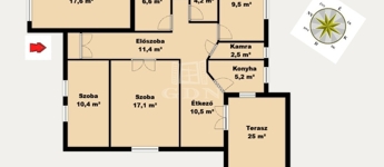 - Előszoba 11,4 nm, nappali 17,1 nm