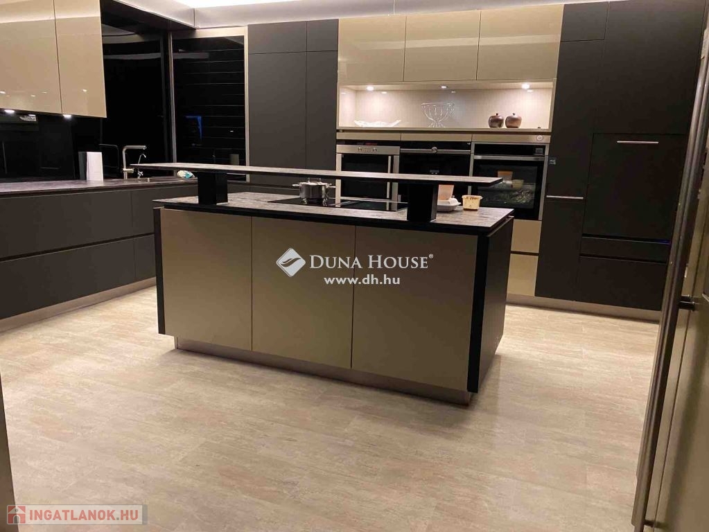 A földszinten, mely közel 250 m2, tágas nappali, télikert beépített grillezővel, elektromos padlófűtéssel, és exkluzív kivitelezésű ALNO konyha áll rendelkezésre. A konyha gránit munkalappal, beépített gépekkel, igazi élményt nyújt a főzéshez. Az egész épület magas műszaki tartalommal rendelkezik, mind a gépészet, mind a burkolatok, szaniterek vonatkozásában.