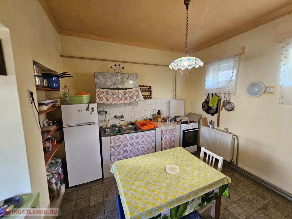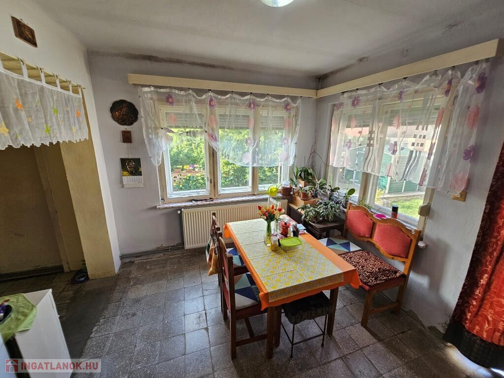 Kaposváron, a Katona József utcában kínáljuk megvételre ezt a családi házat. Lakóterülete 80 m2, ahol ki van alakítva egy nagyobb és három kisebb szoba, kádas fürdő, konyha, és azzal egy légtérben az étkező-nappali-előtér. Ide vezet fel pár lépcső, ide lépünk be az udvarról, ez az otthon központi része. Innen közlekedőn keresztül érhető el a négy külön bejáratú háló, így praktikusan elkülönül a közösen használt tér és a privát szféra. A ház ablakainak nagy része hőszigetelt, csak az étkező két ablakát nem cserélték még ki. A tető betoncseréppel fedett, jó állapotú. Egyebekben a ház felújításra szorul. Fűtése központi vegyes tüzelésű kazánnal megoldott, meleg vizet villanybojler ad. A telek 583 m2-es, parkosított, fákkal, virágokkal ültetett. Elöl az udvarba akár három személygépkocsi is befér. Van fatároló, és egyéb tároló. Az igény szerinti munkák elvégzése után remek családi fészek válhat belőle kellemes terasszal, kerttel.