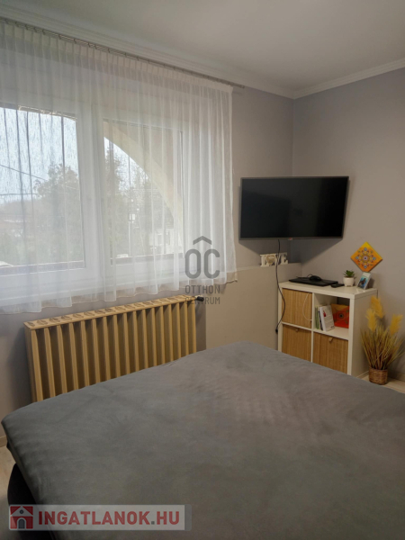 Felújított szoba: az egyik helyiség teljeskörűen megújult ( új burkolat, modern, 3 rétegű hangszigetelt nyílászáró, valamint új villanyvezetékek kerültek beépítésre)