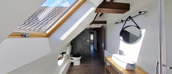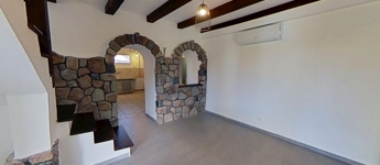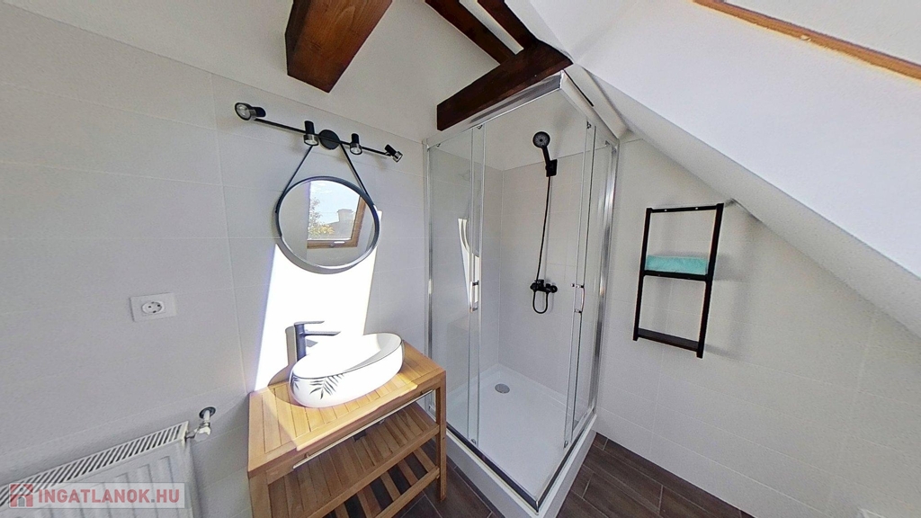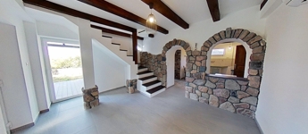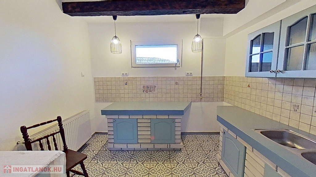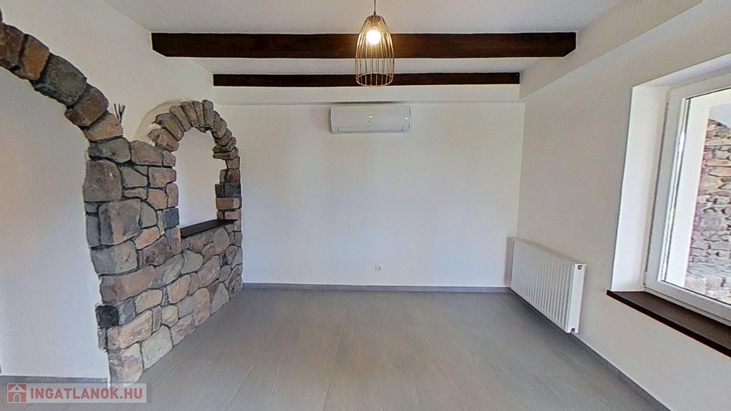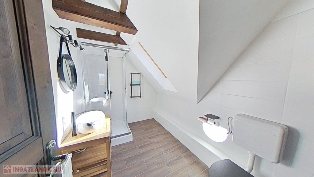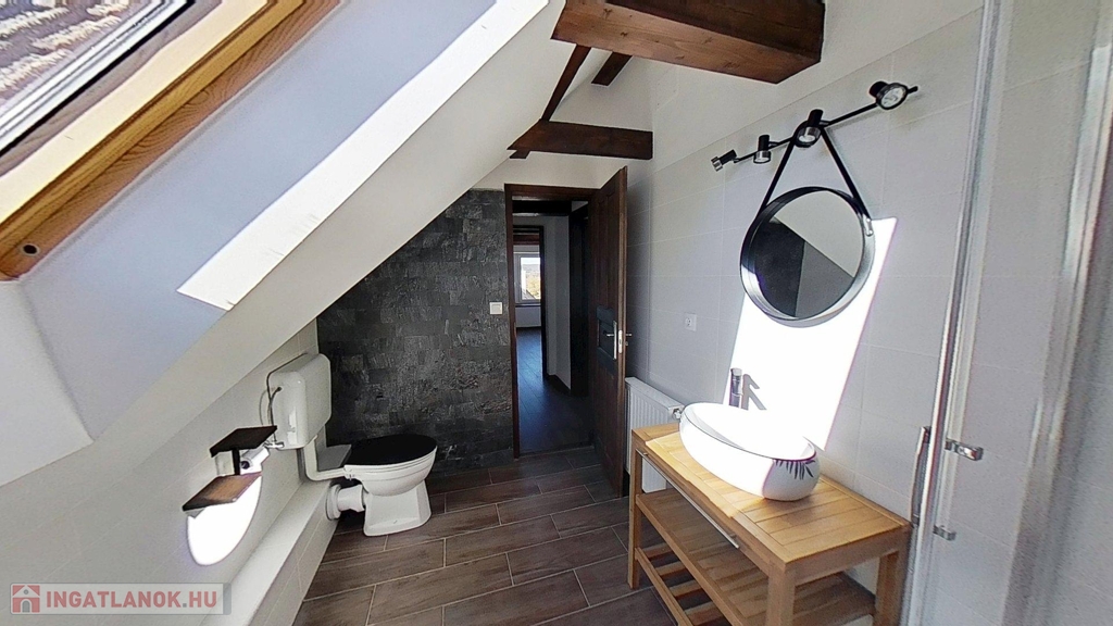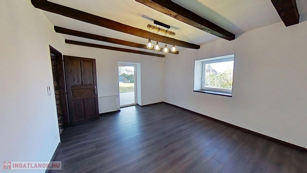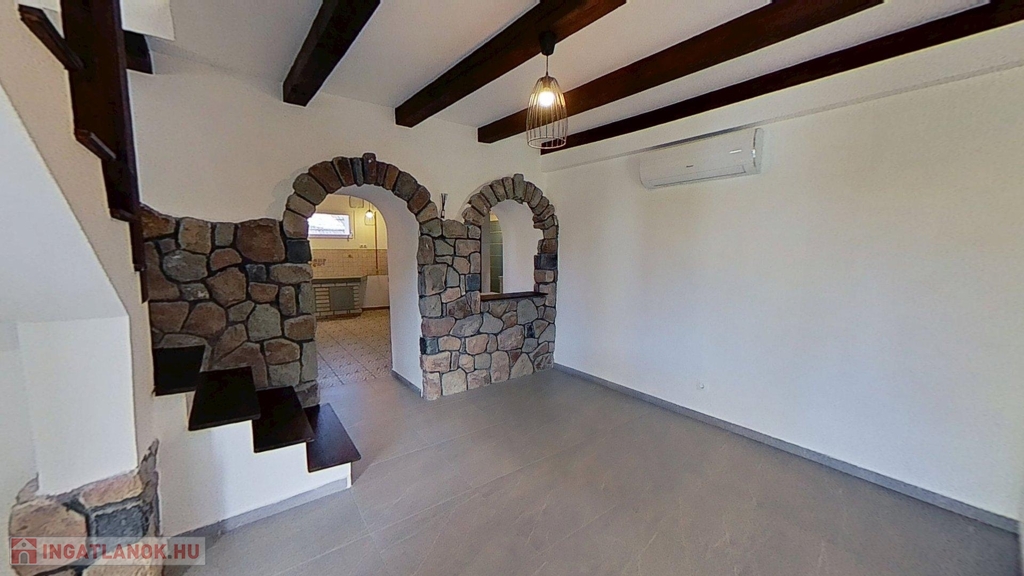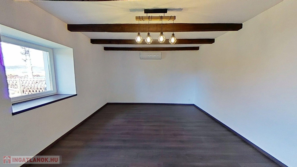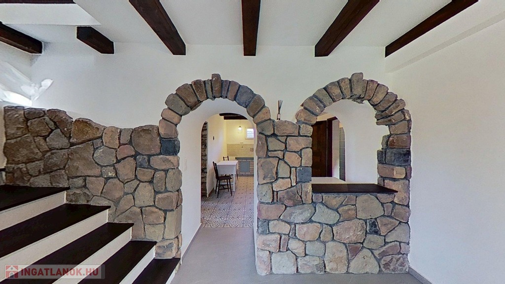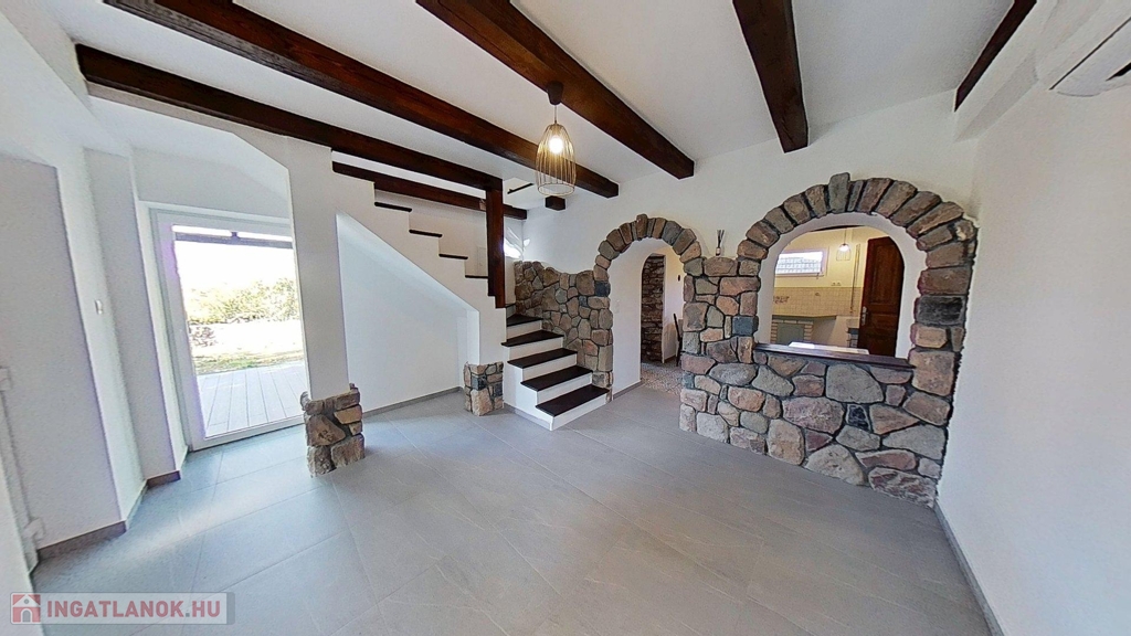 Eladó egyedi megjelenésű, földszint plusz tetőtér-beépítéses, 100 m2 belső hasznos területű, 3 szobás, duplakomfortos, felújított családi ház a Balaton északi partján, Kővágóörsön, elvehetetlen panorámával a Káli-medencére, a Kis-Hegyestűre és a kővágóörsi kőtengerre.