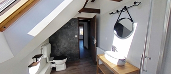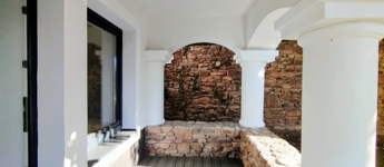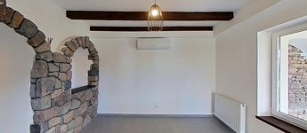 Fontos szempont volt a felújításnál az épület hagyományos stílusjegyeinek a megőrzése, így köszön vissza a múlt egy darabkája a rusztikus terméskő falazat és a pácolt nagyméretű fa gerendák formájában.