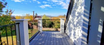 A ház Ny-i tájolású, a szinteket belső lépcső köti össze, az emeleti lépcsőfordulónál 12 m2-es erkélykapcsolattal rendelkezik, a földszinten hangulatos tornácos terasz, valamint egy 12 m2-es fedett terasz került kialakításra. Tájolásának köszönhetően a nyári estéket a naplemente látványa koronázza meg, a megunhatatlan szépségű táj panorámája pedig minden évszakban, minden napszakban más arcát mutatja.