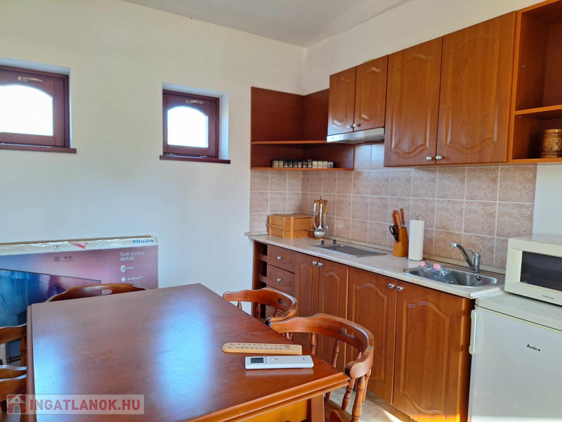 szoba,konyha,fürdőszoba,és egy autó beállásos garázs automata garázskapuval felszeret.