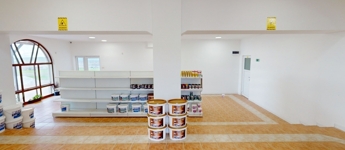A földszinten találhatunk egy hatalmas nagy teret. Gyönyörű szép burkolattal, fallal, spotlámpákkal. Gyönyörű kilátással a környezetre. Képzeljük el, hogy akár egy étteremként, akár egy bemutató teremként – attól függően, hogy mire kívánjuk használni az ingatlant – kiválóan funkcionálhat a mellette levő külön teremmel, recepcióval, és a hozzá tartozó tárolókkal együtt.