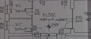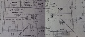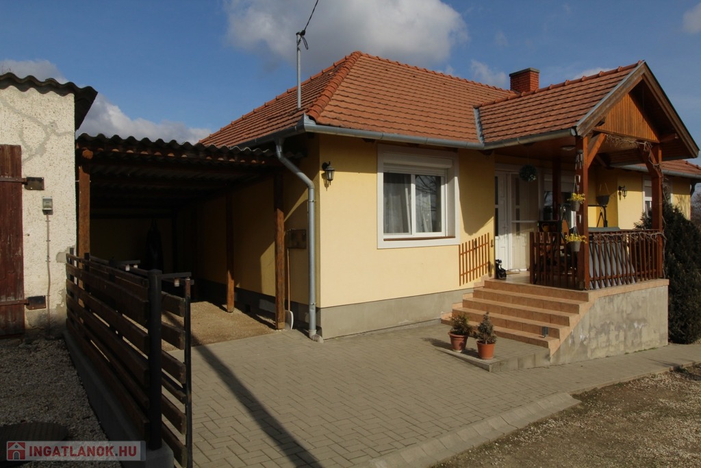 Elosztása: fedett terasz, nappali, konyha, mosószoba, fürdő, illemhelyiség, és 2,5 szoba.