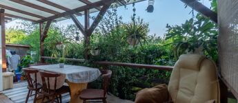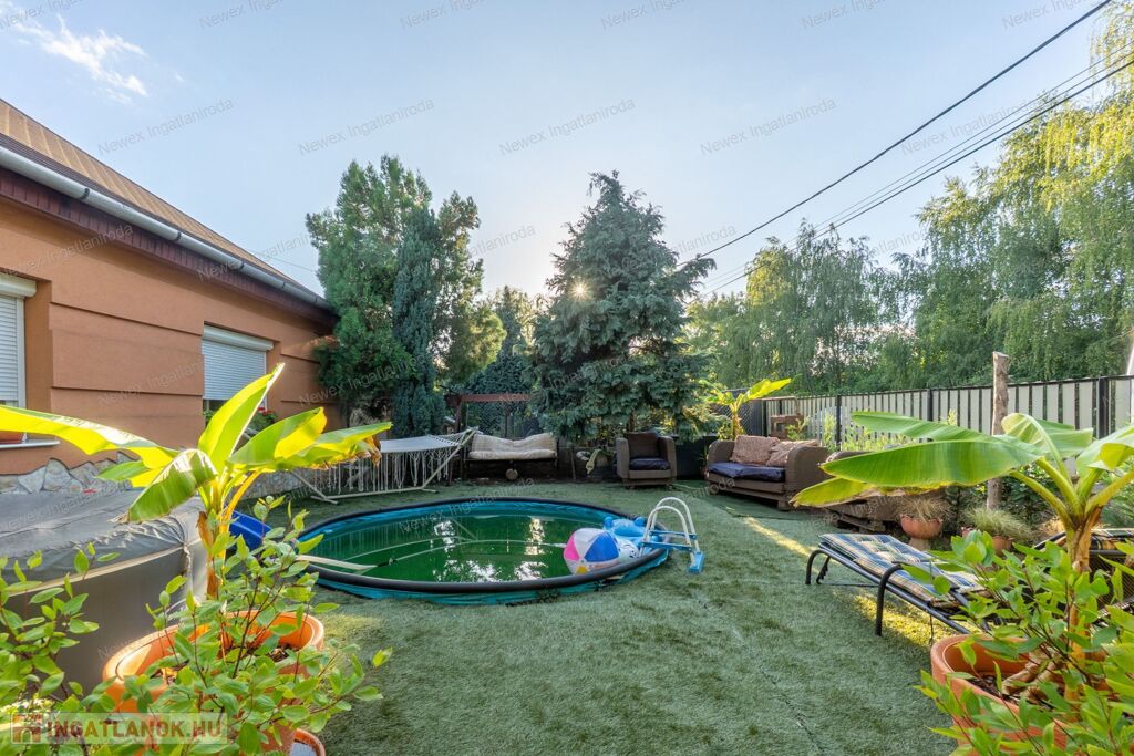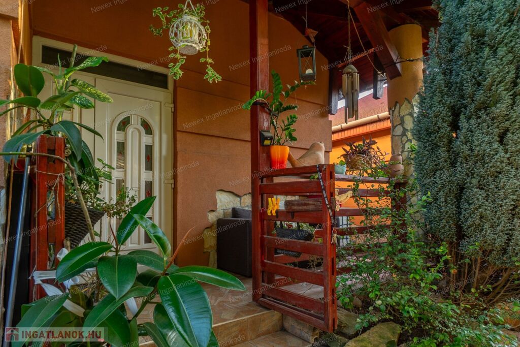A parkosított, arborétum jellegű kert különleges atmoszférát teremt: saját halastó híddal, gondozott növényállomány, szalonnasütő és hangulatos pihenőrészek szolgálják a kikapcsolódást. Az ingatlan alatt pince is található.