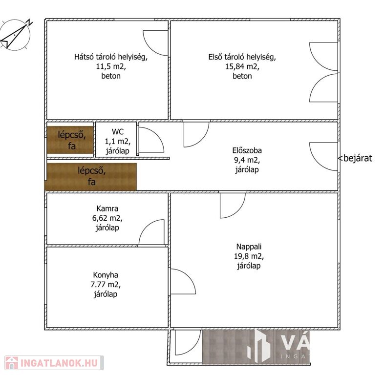 A négy szoba mellett, a lakószinten további két helyiség is van, amit jelenleg csak tárolásra használnak, de könnyedén további lakószobákká alakíthatóak.
