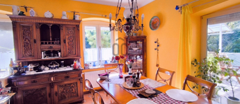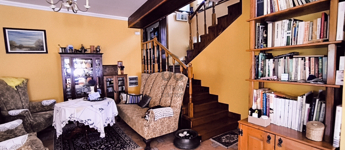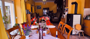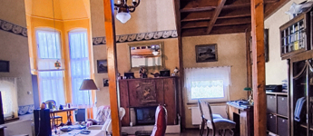 A ház 250 négyzetméteres, négy tágas szobája, társalgója, galériája különleges hangulatot nyújt.