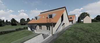 Ez a modern otthon 110 nm-es lakótérrel, egy 11,24 nm-es terasszal, egy 16,4 nm-es garázzsal és egy 400 nm-es kerttel biztosítja a hétköznapok kényelmét.