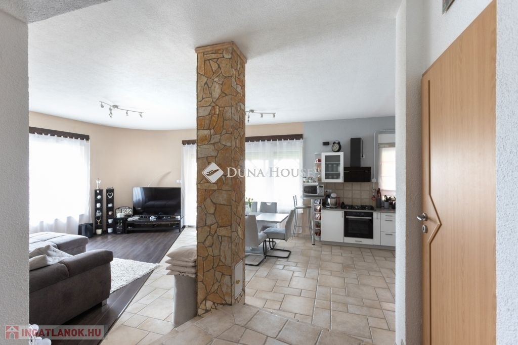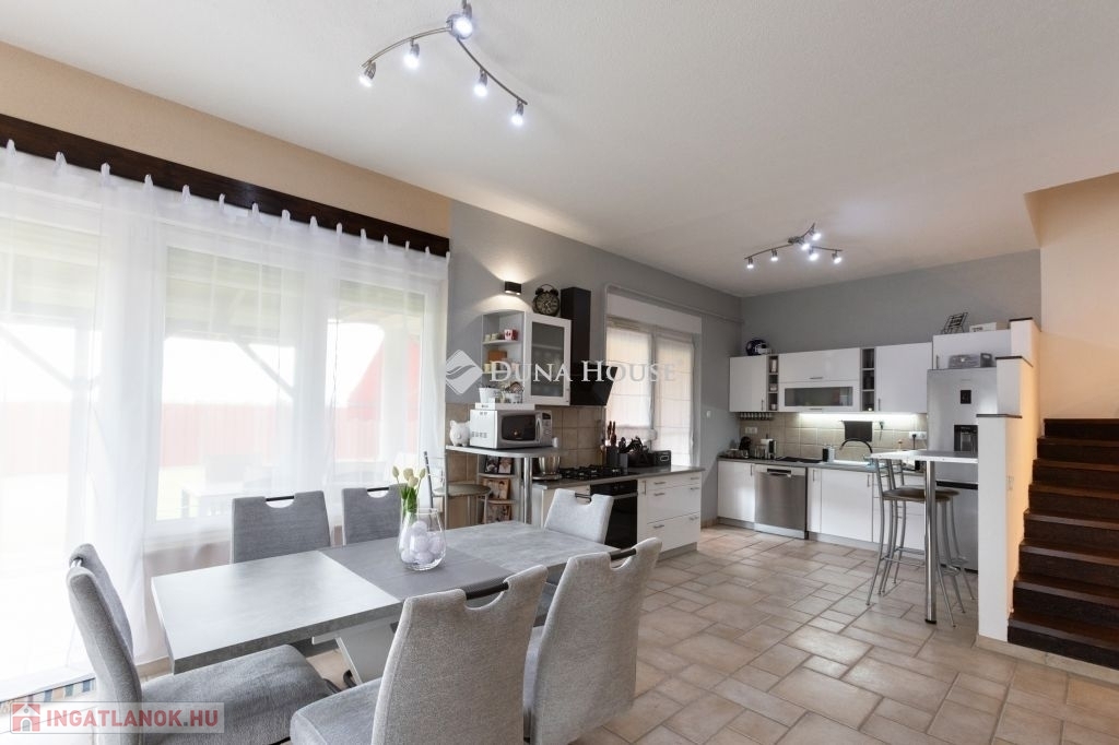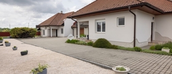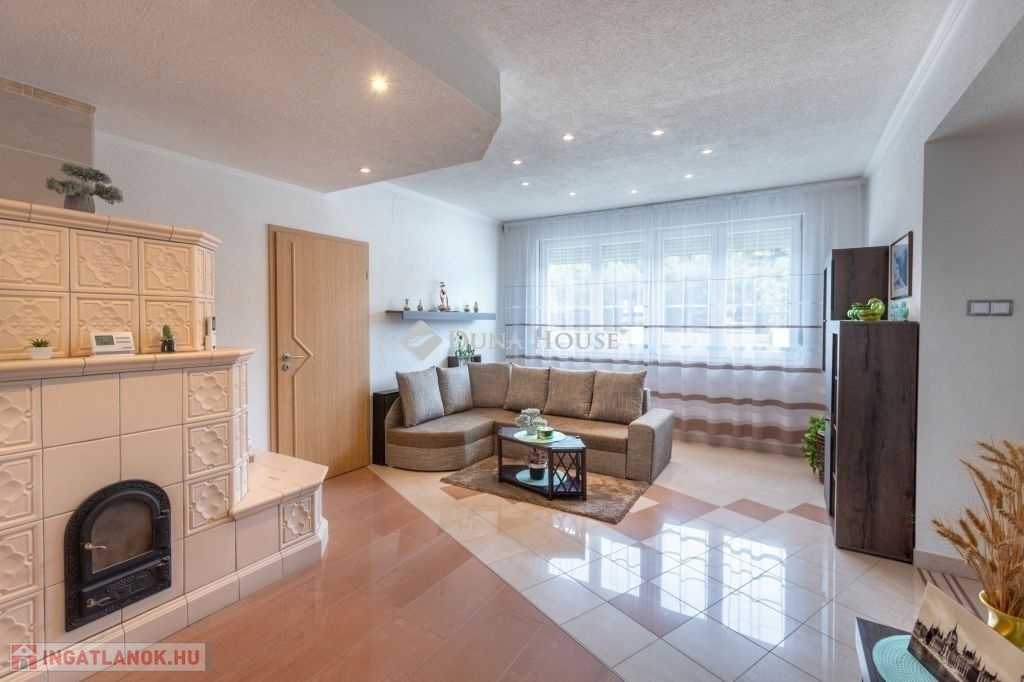 - Nagyméretű nappali Mecsekre néző nyugati tájolással, fedett teraszos kertkapcsolattal
